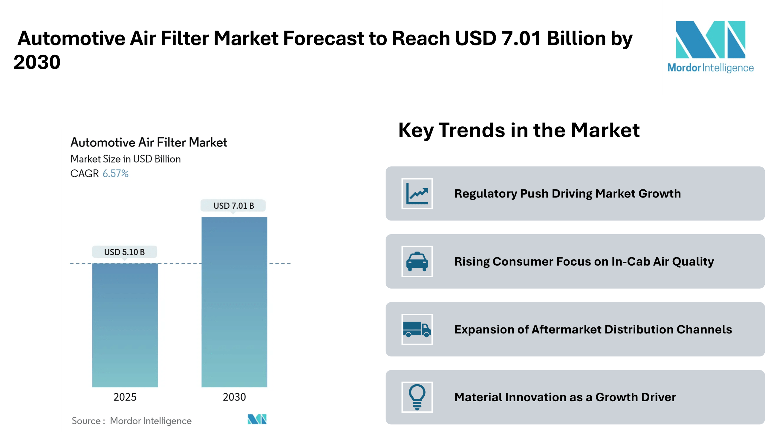 Rising global vehicle ownership and aging fleets are driving demand for automotive air filters from both OEMs and the aftermarket. Understanding the market share between these segments is key for stakeholders to track growth and remain competitive.